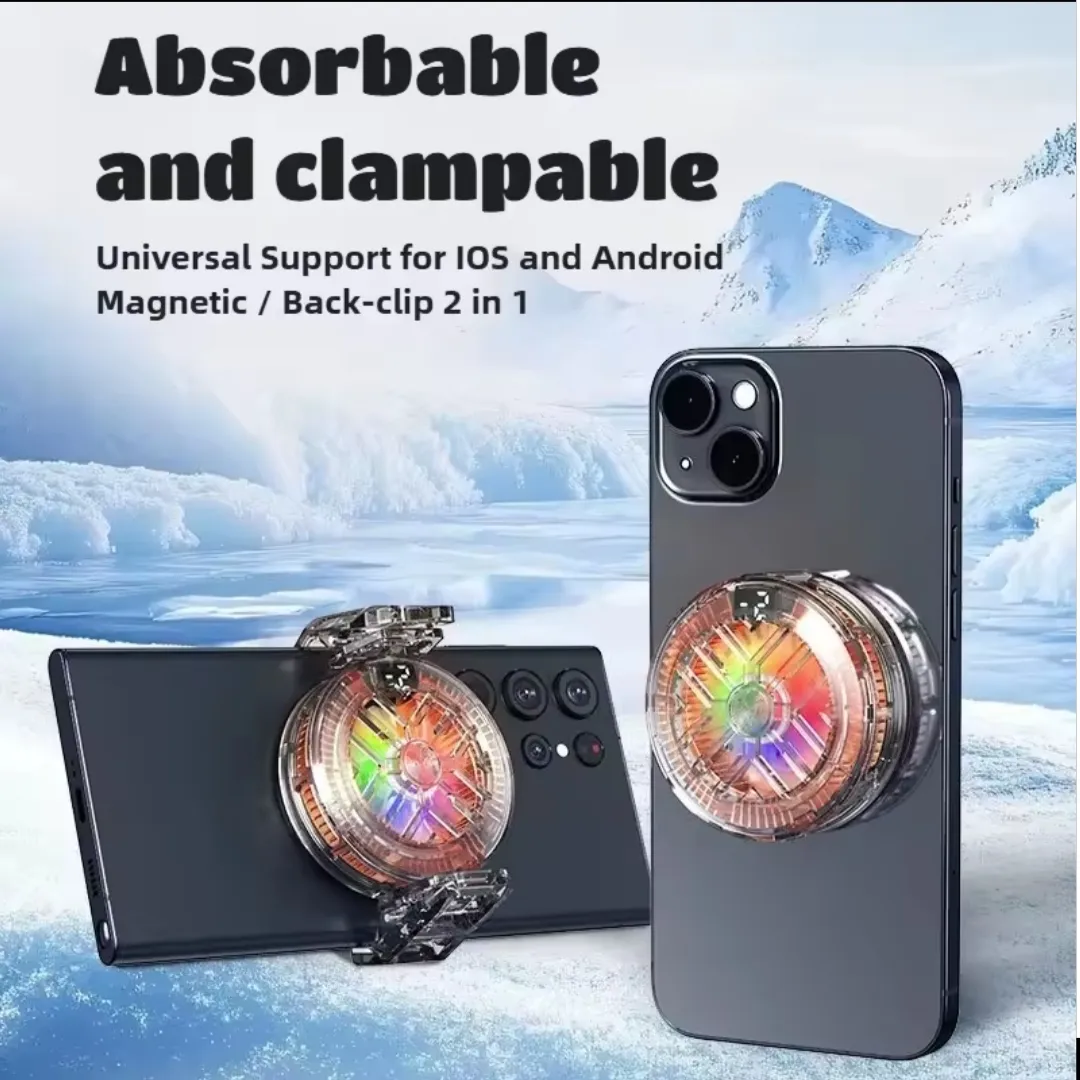 • اتصال ۲ در ۱: نحوه اتصال فن خنک کننده موبایل رادیاتوری مدل F61 به صورت مگنتی و گیره‌ای (Magnetic / Back-clip) است. این طراحی به شما اجازه می‌دهد بسته به مدل گوشی و راحتی خود، فن را به صورت سریع مگنتی یا محکم گیره‌ای نصب کنید.