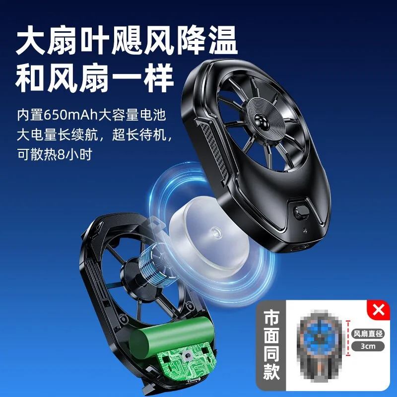 نوع فن: پنکهای (Air Cooling): این فن با ایجاد جریان هوای قوی و پرفشار، به دفع سریع گرما از سطح گوشی کمک کرده و از تجمع حرارت جلوگیری میکند. این روش ساده و مؤثر، برای خنکسازی سریع گوشیهای موبایل ایدهآل است.